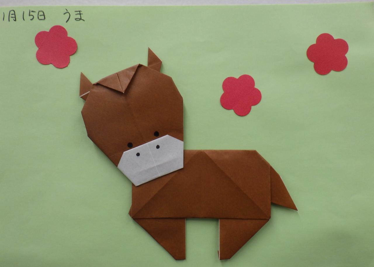 今週のおりがみあそびは、うまを折ります。