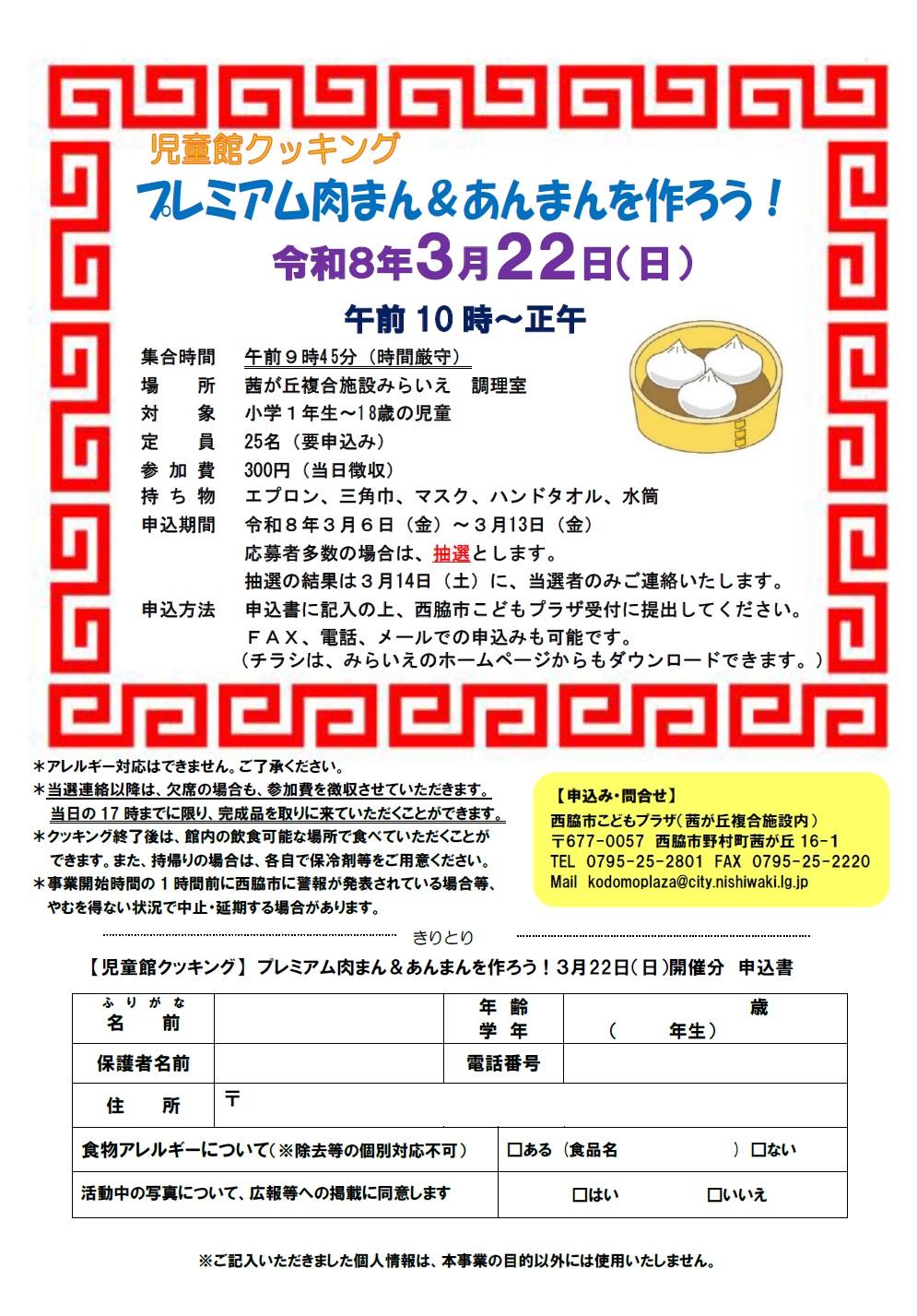3月の児童館クッキングは、「プレミアム肉まん&あんまん」を作ります。皆様の参加をお待ちしております。問合せ:西脇市こどもプラザ 0795-25-2801児童館クッキング>>詳細はこちら