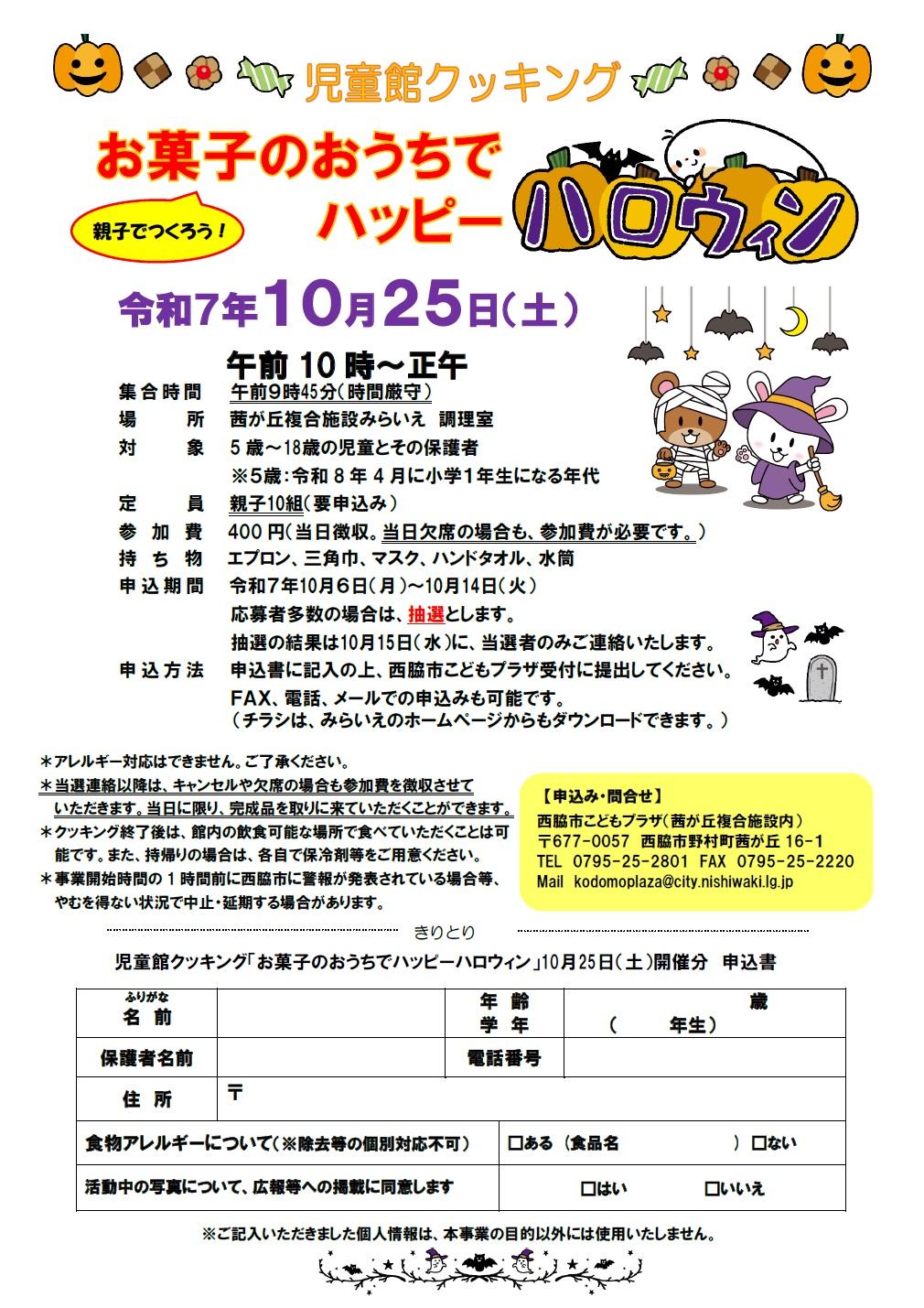 10月の児童館クッキングは、「お菓子のおうちでハッピーハロウィン」