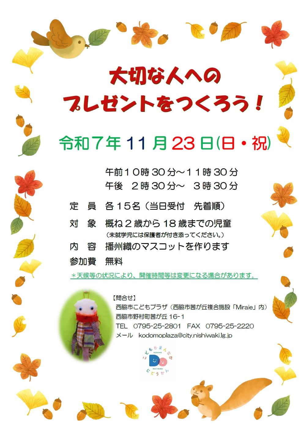 問合せ:西脇市こどもプラザ 0795-25-2801