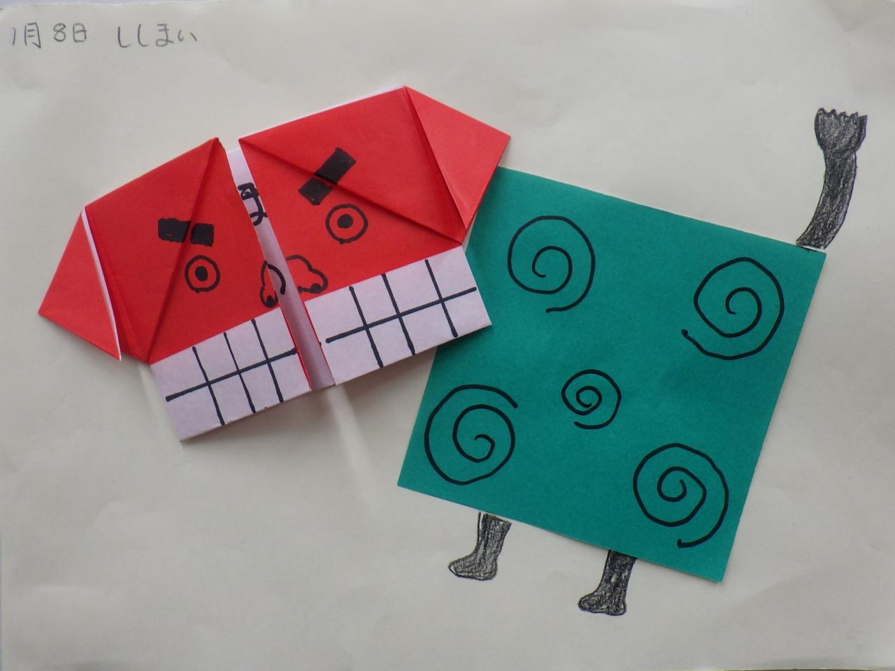 2026年に入って初めてのおりがみあそびは、獅子舞を折ります。