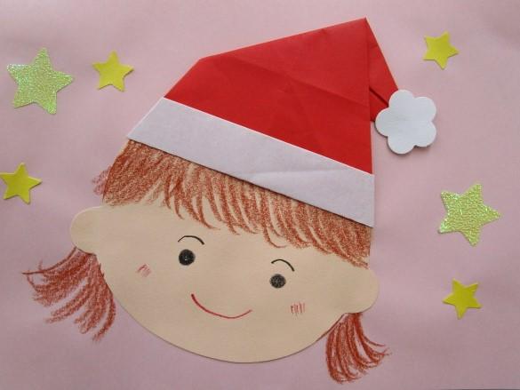 今週のおりがみあそびは、サンタの帽子を折ります。