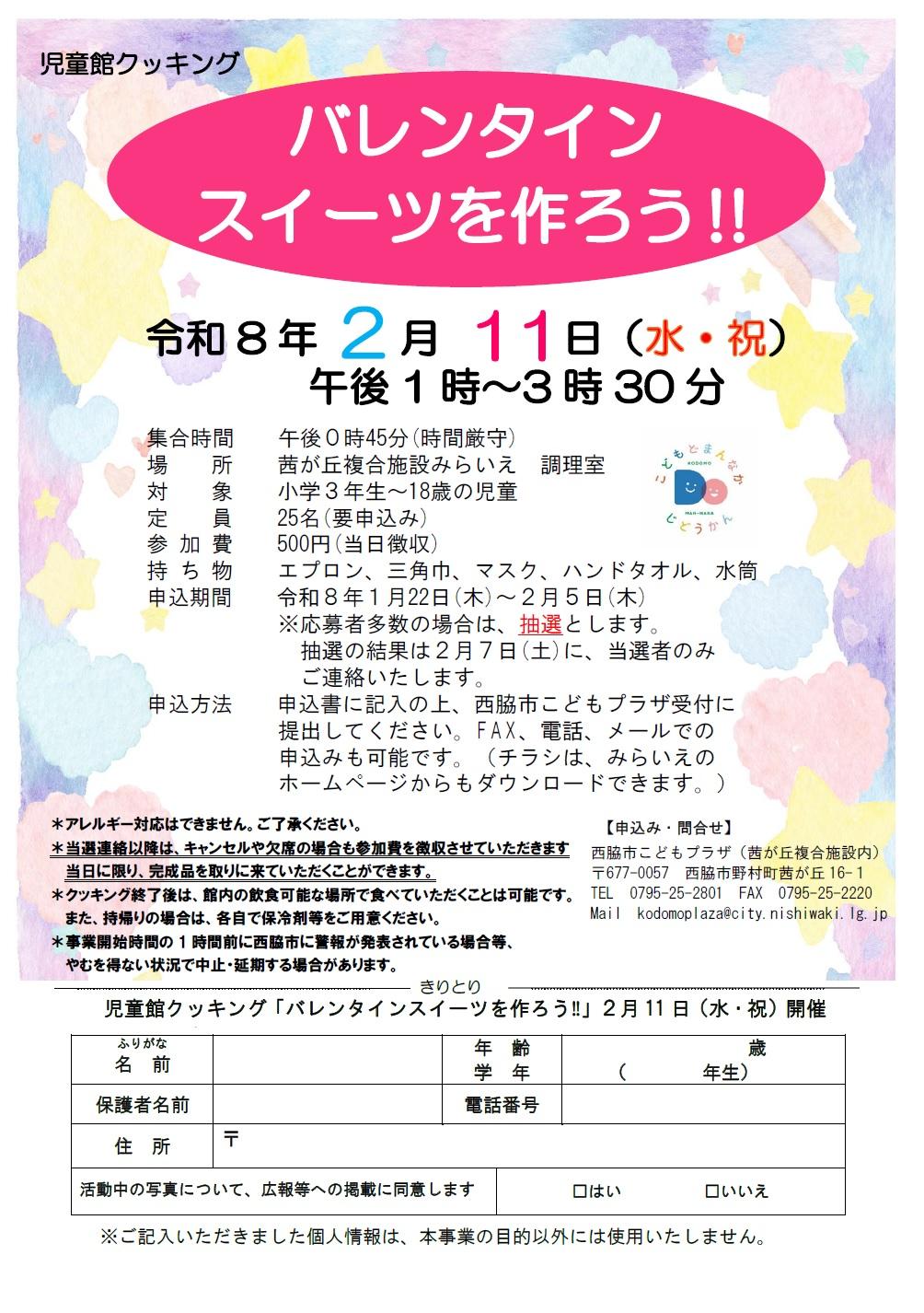 2月のクッキングは、「バレンタインスイーツ」を作ります。